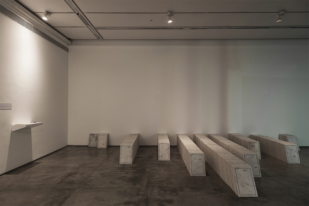 ഈ ഇന്സ്റ്റലേഷനിലെ ഏറ്റവും ശ്രദ്ധേയമായ ഘടകം 1278 മാര്ബിള് സ്ലാബുകളുടെ നിരയാണ്. തറയില് ക്രമീകരിച്ചിരിക്കുന്ന സ്ലാബുകള് ഒരു താത്ക്കാലിക ശവക്കല്ലറകള് പോലെ കാണപ്പെടുന്നു. ഓരോ സ്ലാബിലും ഒന്നു മുതല് 1278 വരെ അക്കങ്ങള് രേഖപ്പെടുത്തിയിട്ടുണ്ട്, പേരുകള് ഇല്ല എന്നത് ശ്രദ്ധേയമാണ്. കാശ്മീരിലെ അടയാളപ്പെടുത്താത്ത ശവകുടീരങ്ങളില് അടക്കം ചെയ്ത വ്യക്തികള്ക്ക് സ്വത്വമോ ഔദ്യോഗിക അംഗീകാരമോ ഇല്ലെന്ന് ഇത് വ്യക്തമാക്കുന്നു.