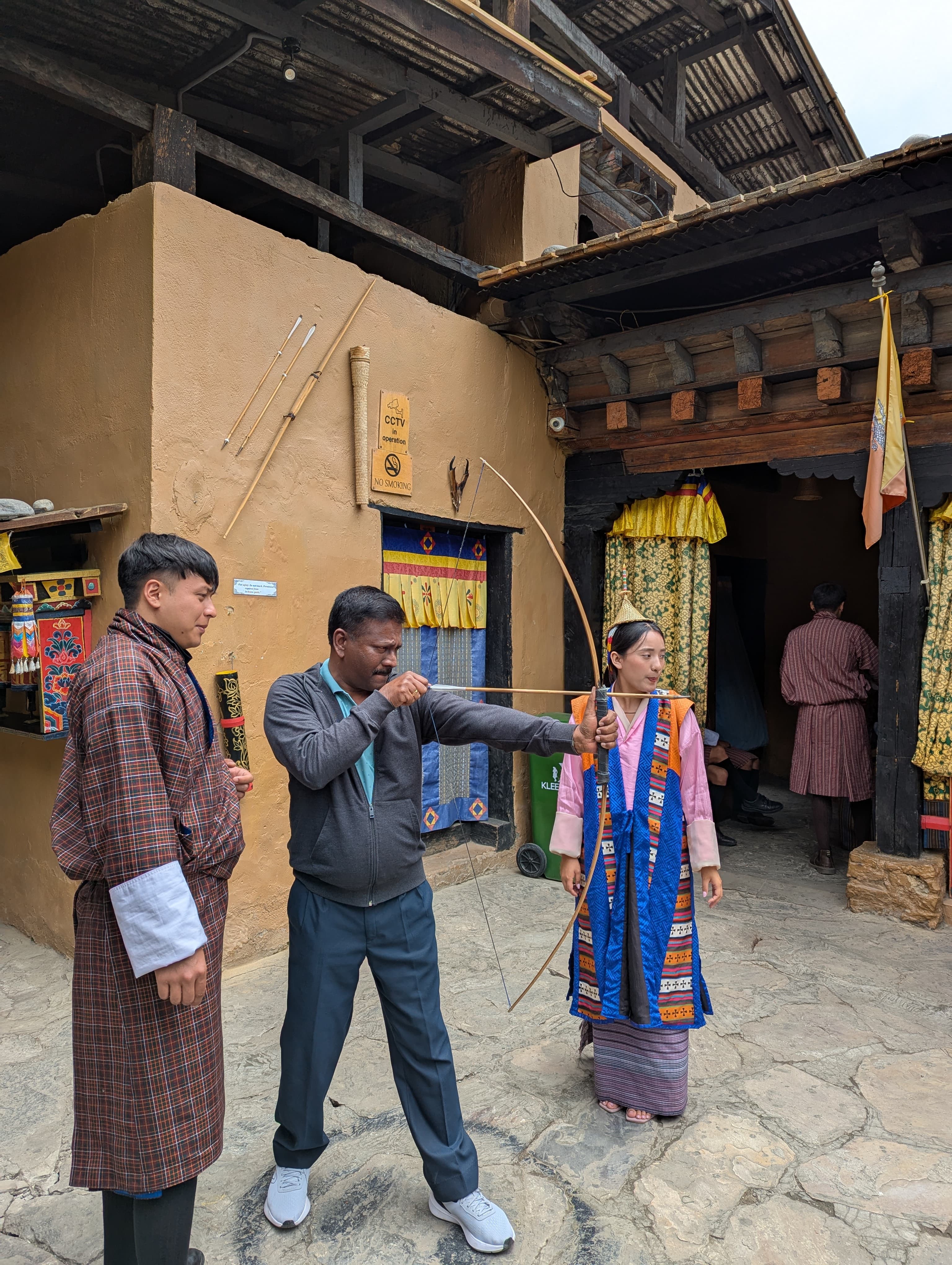 സർക്കാരിന്റെ മേൽനോട്ടത്തിൽ നടത്തുന്ന പവലിയനിൽ, അവിടെ വരുന്ന വിനോദസഞ്ചാരികൾക്ക് അമ്പെയ്ത്ത് നടത്തുന്നതിന് ഒരു കോർട്ട് സജ്ജമാക്കിയിട്ടുണ്ട്. ലക്ഷ്യത്തിൽ കൊള്ളിക്കാൻ കഴിയുന്ന ടൂറിസ്റ്റുകൾക്ക് പാരമ്പര്യ രീതിയിലുള്ള വസ്ത്രധാരണം നടത്തിയ കലാകാരന്മാർക്ക് ഒപ്പം ഡാൻസ് കളിക്കാൻ അവസരം നൽകുക, അമ്പ് ലക്ഷ്യത്തിൽ കൊള്ളിക്കുമ്പോൾ അയാളെ ആദരിക്കുക എന്നതെല്ലാം അവരുടെ ആചാരത്തിന്റെ ഭാഗമാണ്. നൂറ്റാണ്ടുകൾക്ക് മുമ്പുള്ള സംവിധാനം ഉപയോഗിച്ച് ഉണ്ടാക്കുന്ന ചാരായം പോലുള്ള ഒരു ദ്രാവകം ടേസ്റ്റ് ചെയ്യാനും ഇവിടെ സംവിധാനം ഉണ്ട്. മിക്കവാറും കടകളിൽ വിദേശമദ്യം മുതൽ നാട്ടിൽ ഉത്പാദിപ്പിക്കുന്ന തനത് വിസ്കികൾ, വൈൻ, ബിയർ തുടങ്ങിയ ഉത്പന്നങ്ങൾ വരെ ലഭ്യമാണ്. വൈകീട്ട് ആയാൽ കരോക്കെ ബാറുകൾ സജീവമാകുന്നു. ഞങ്ങൾ വീക്കെൻഡിൽ ആയിരുന്നു പ്രധാന പട്ടണങ്ങൾ ആയ തിംഫുവിലും പാരോവിലും തങ്ങിയത്. ഇവിടെയെല്ലാം ആഘോഷങ്ങൾ നേരം വെളുക്കുവോളം തുടരുന്നത് കണ്ടു.