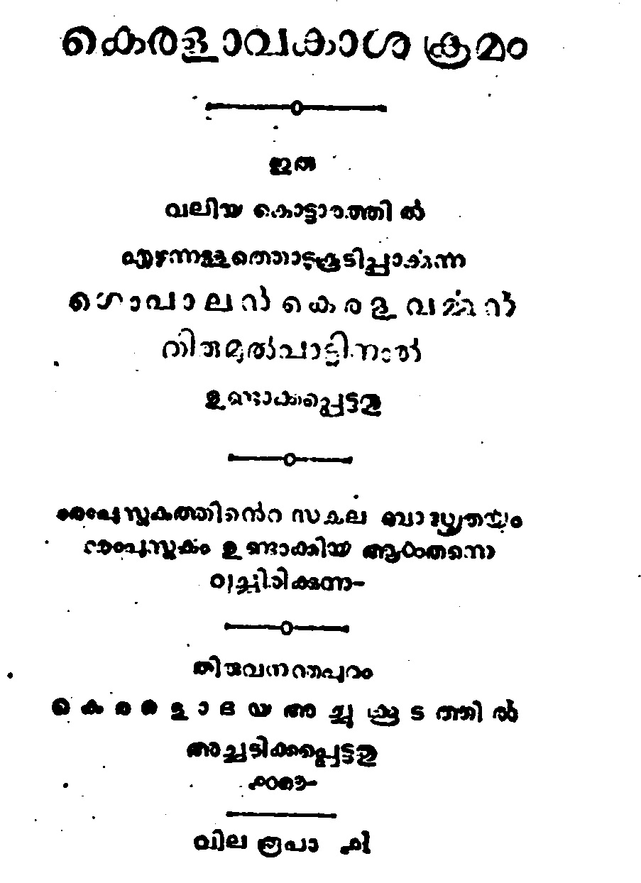 രണ്ടുനൂറ്റാണ്ട് പിന്നിട്ട മലയാള പുസ്തകപ്രസാധനചരിത്രത്തിലെ ഏറ്റവും നിർണ്ണായകമായ സന്ദർഭങ്ങളിലൊന്നാണ് ആവിഷ്കാരസ്വാതന്ത്ര്യത്തിനും എഴുത്തുകാരനെന്ന പദവി ഉറപ്പിച്ചെടുക്കുന്നതിനുംവേണ്ടി ഗോപാലൻ കേരളവർമൻ തിരുമുൽപ്പാട് നടത്തിയ നിയമപോരാട്ടം. കേരളത്തിൽ നിരോധിക്കപ്പെട്ട ആദ്യപുസ്തകമാണ് ഗോപാലൻ തിരുമുൽപ്പാട് എഴുതിയ കേരളാവകാശക്രമം.1876ൽ തിരുവനന്തപുരത്തെ മുദ്രാവിലാസം അച്ചൂകൂടത്തിലാണ് പുസ്തകം അച്ചടിച്ചത്. ജാതി സമുദായങ്ങളുടെയും ഭരണകൂടത്തിന്റെയും നിശിതമായ വിമർശനത്തെ തുടർന്ന് ജില്ലാകോടതി പുസ്തകം കണ്ടുകെട്ടി. ആവിഷ്കാര സ്വാതന്ത്ര്യത്തിനുമേലുള്ള കടന്നുകയറ്റമാണ് കീഴ്ക്കോടതി വിധിയെന്നു ചൂണ്ടിക്കാട്ടി ഗ്രന്ഥകാരൻ തിരുവിതാംകൂർ സദർകോടതിയെ സമീപിക്കുകയും പുസ്തകനിരോധനം പിൻവലിപ്പിക്കാനുള്ള അനുകൂലവിധി സമ്പാദിക്കുകയും ചെയ്തു. കീഴ്ക്കോടതി വിധി അസ്ഥിരപ്പെടുത്തിക്കൊണ്ട് ജഡ്ജിമാരായ ചെല്ലപ്പാപിള്ളയും, ടി കൃഷ്ണനും നടത്തിയ വിധി പ്രസ്താവം പത്തൊമ്പതാം നൂറ്റാണ്ടിൽ ജാതിവെറികളിൽ ഉറഞ്ഞുതുള്ളിയ സമുദായ പ്രമാണിമാരെ തെല്ലൊന്നുമല്ല അസ്വസ്ഥരാക്കിയത്.