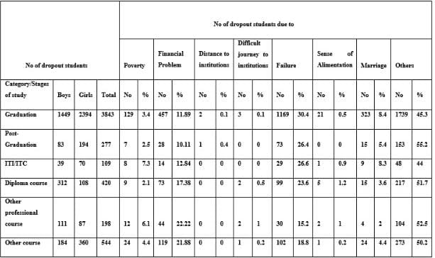 മറ്റു കോഴ്സുകള്: സാമ്പത്തിക പ്രശ്നങ്ങള് (21.88%) ഒപ്പം 'മറ്റു കാരണങ്ങള്' (50.2%) പ്രധാനം.