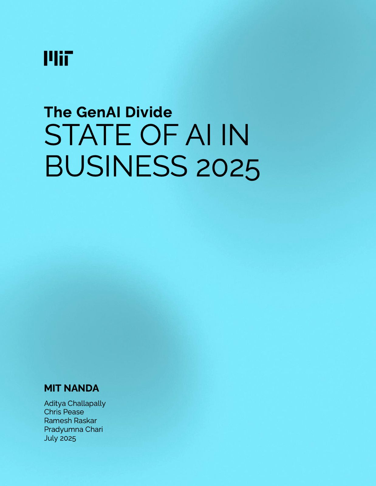 MIT-യിലെ പ്രോജക്ട് നാൻഡയുടെ (Project NANDA) പഠനം ജൂലൈയിൽ അവർ പ്രസിദ്ധീകരിച്ചു. അതിന്റെ വിശദാംശങ്ങൾ ചർച്ചയാവുന്നത് ഓഗസ്റ്റ് അവസാനത്തോടെയാണ്. ‘The GenAI Divide: State of AI in Business 2025’ എന്ന തലക്കെട്ടോട് കൂടെയുള്ള പഠനത്തിൽ കമ്പനികൾ എഐ ഇന്റഗ്രേഷന് വേണ്ടി നടത്തിയ വലിയ നിക്ഷേപങ്ങളും, അവയുടെ പുരോഗതിയും, അവയുടെ നിലവിലെ അവസ്ഥയും വിവരിക്കുന്നു. ഏതാണ്ട് 30- 40 ബില്യൺ ഡോളറിന്റെ നിക്ഷേപങ്ങൾ ജെൻഎഐയിലേക്ക് കമ്പനികൾ നടത്തിയിട്ടുണ്ടെങ്കിലും ഇതിൽ തൊണ്ണൂറ്റിയഞ്ച് ശതമാനം കമ്പനികൾക്കും ലഭിച്ച വരുമാനം അല്ലെങ്കിൽ ലാഭം പൂജ്യം ആണ്. ആകെ അഞ്ച് ശതമാനം കമ്പനികൾക്ക് മാത്രമേ ലാഭം കൈവരിക്കാൻ സാധിച്ചിട്ടുള്ളൂ, അല്ലെങ്കിൽ സാധിക്കുന്നുള്ളൂ.